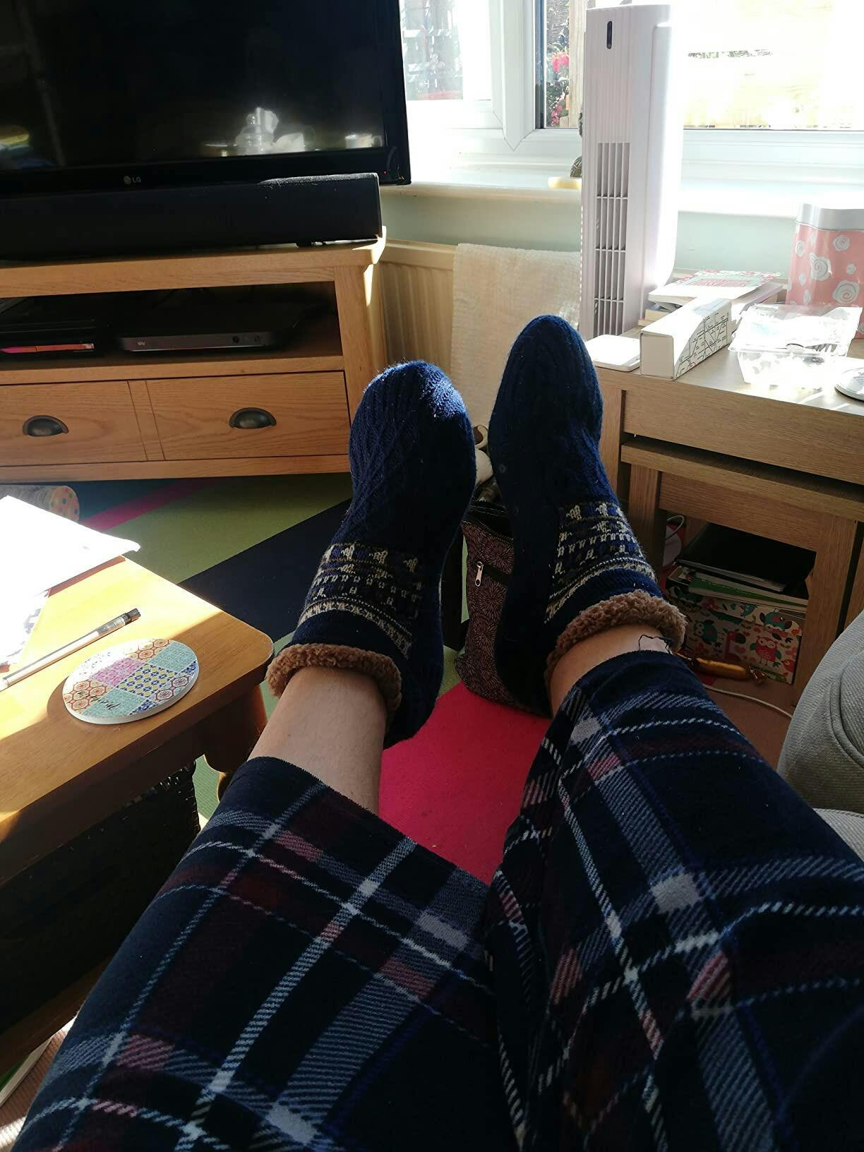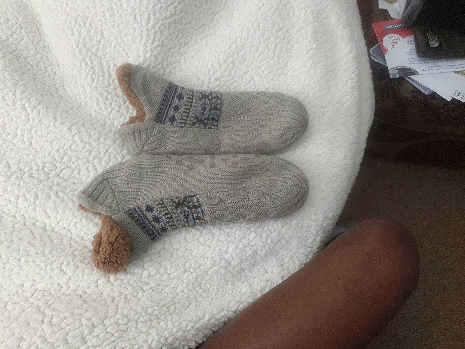 I purchased these Humtto UK Slipper Socks for my wife, and she absolutely loves them! The combination of warmth and comfort is unparalleled. The sherpa lining keeps her feet cozy without overheating, perfect for those chilly nights or early mornings. The non-slip feature is a thoughtful touch, ensuring she can move around without worry.#verified