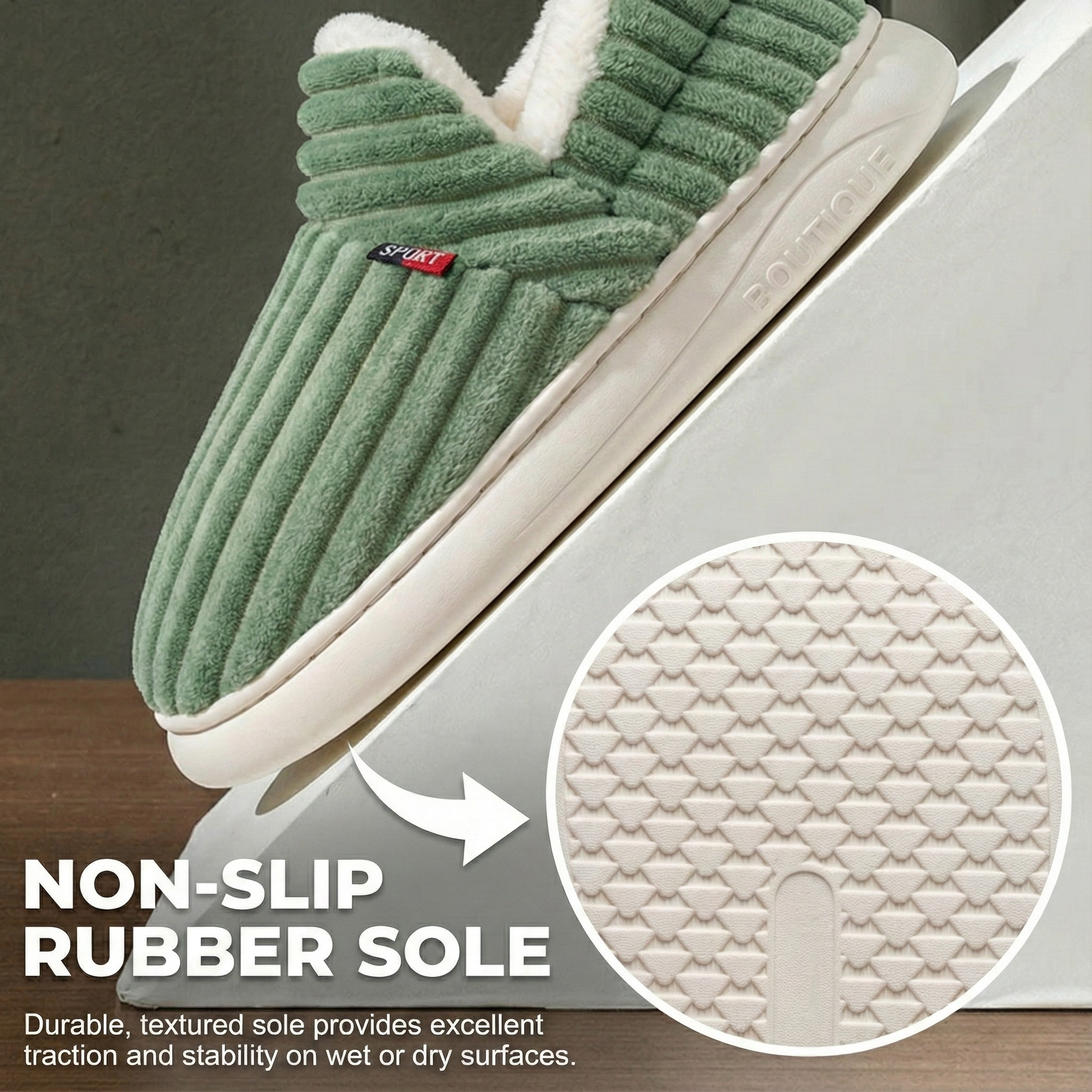 - Faux Plush Insole: Soft, breathable material promotes air circulation.