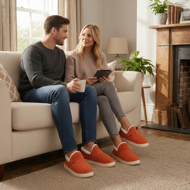 Unisex Corduroy Slippers with Arch Support | Warm Fleece Lined Comfort