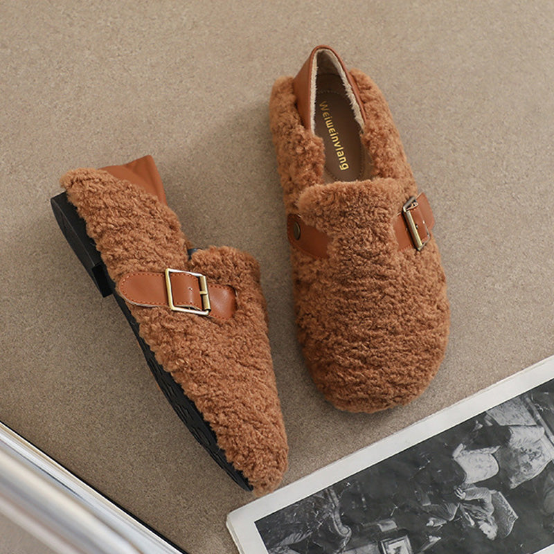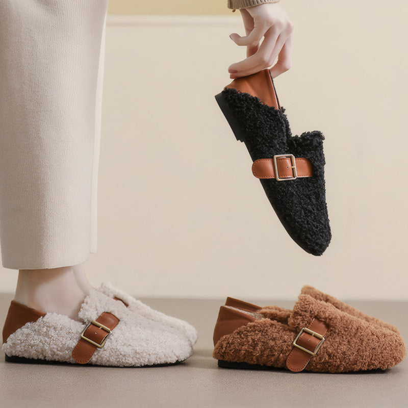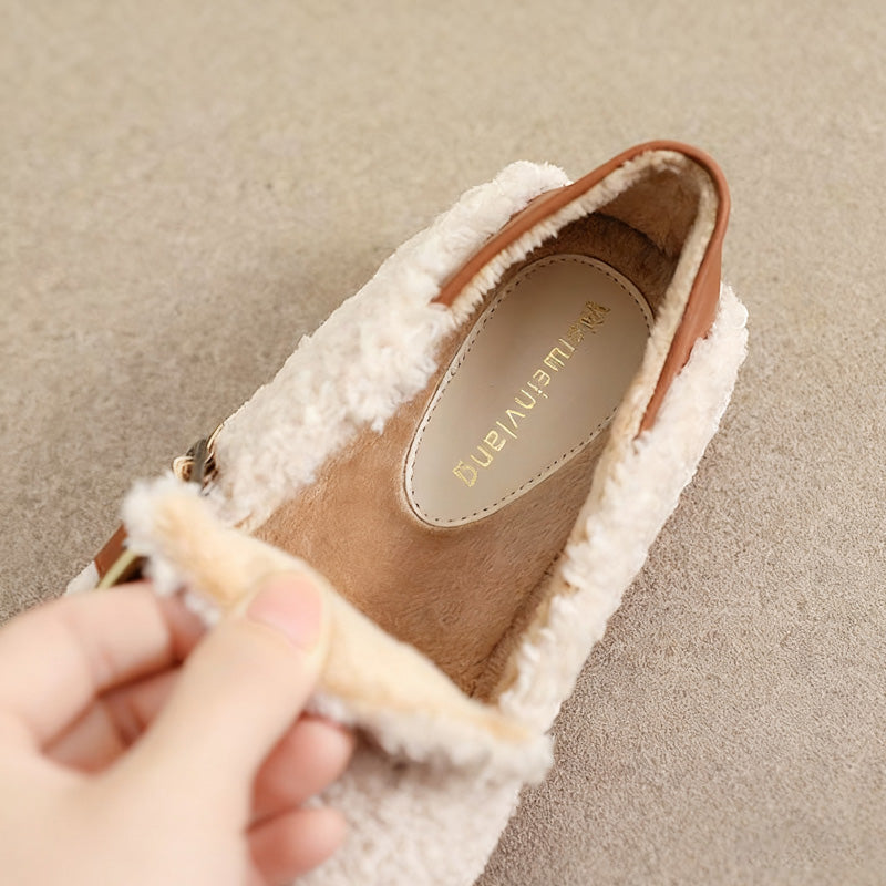 Womens Cozy Fleece Flats with Arch Support | Warm Teddy-Style Loafers