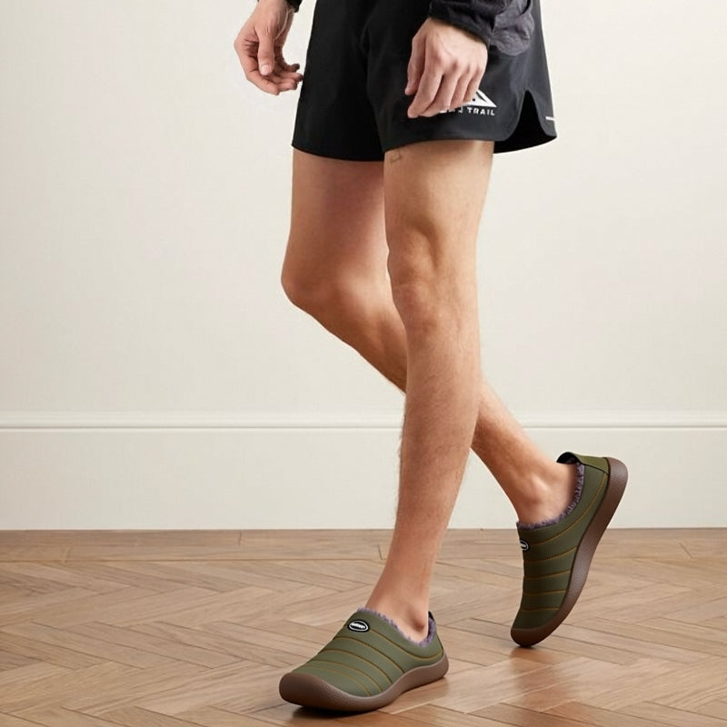 Unlike flat slippers, they provide true orthopedic support with an arch support structure, a wide toe box, and a memory foam insole that molds to your foot.