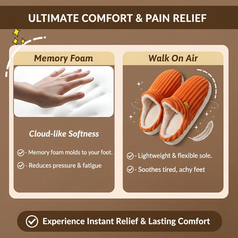 The memory foam insole cushions every step, helping to relieve foot pain and fatigue. Lightweight and soft, these slippers let you relax all day while enjoying gentle support.