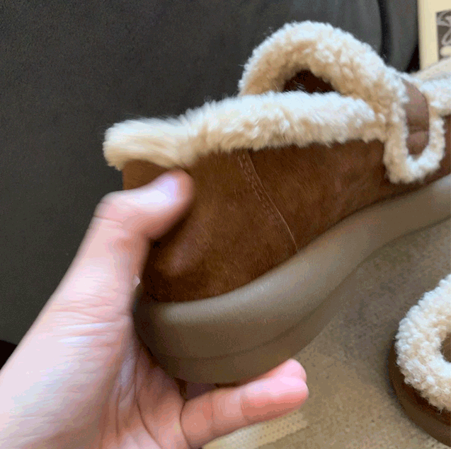 ✔ Lamb fleece + latex insole combines plush warmth with responsive cushioning