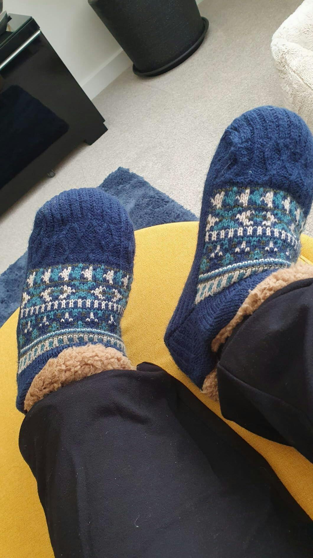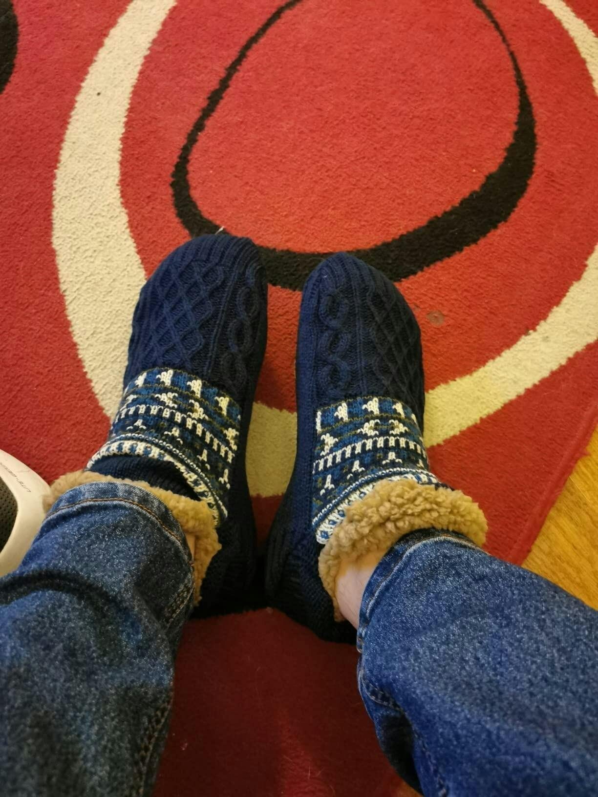 Warm, cushioned and supported feet for desk, sofa or home use. No slippers or shoes needed. Slip on and feel instantly relaxed.