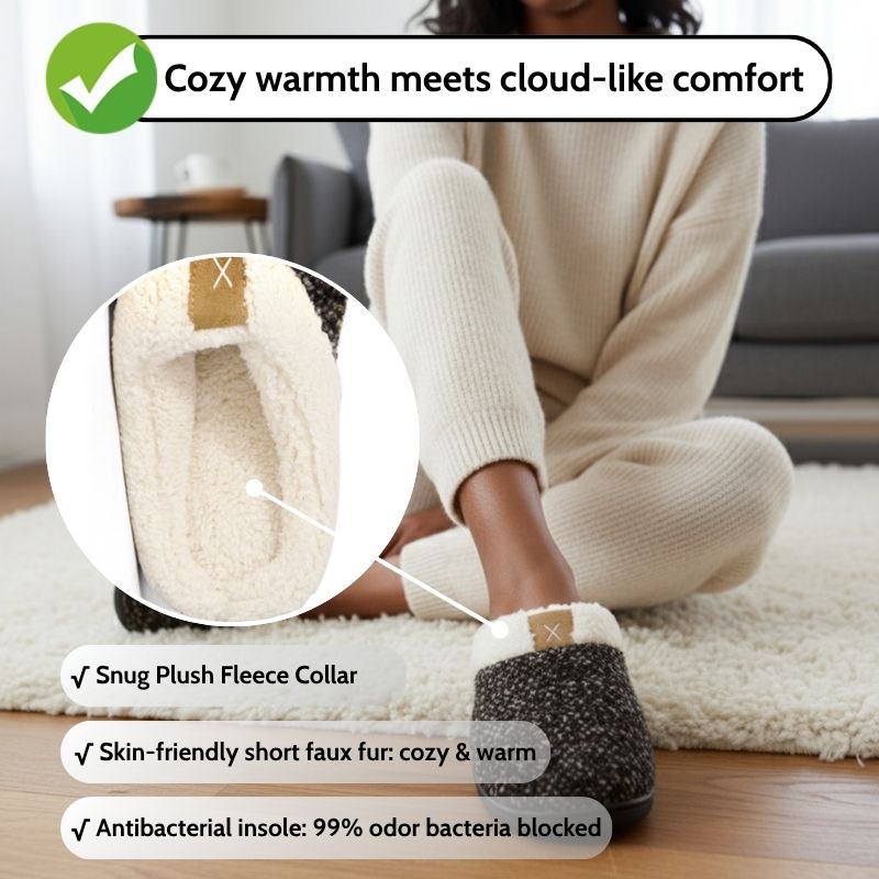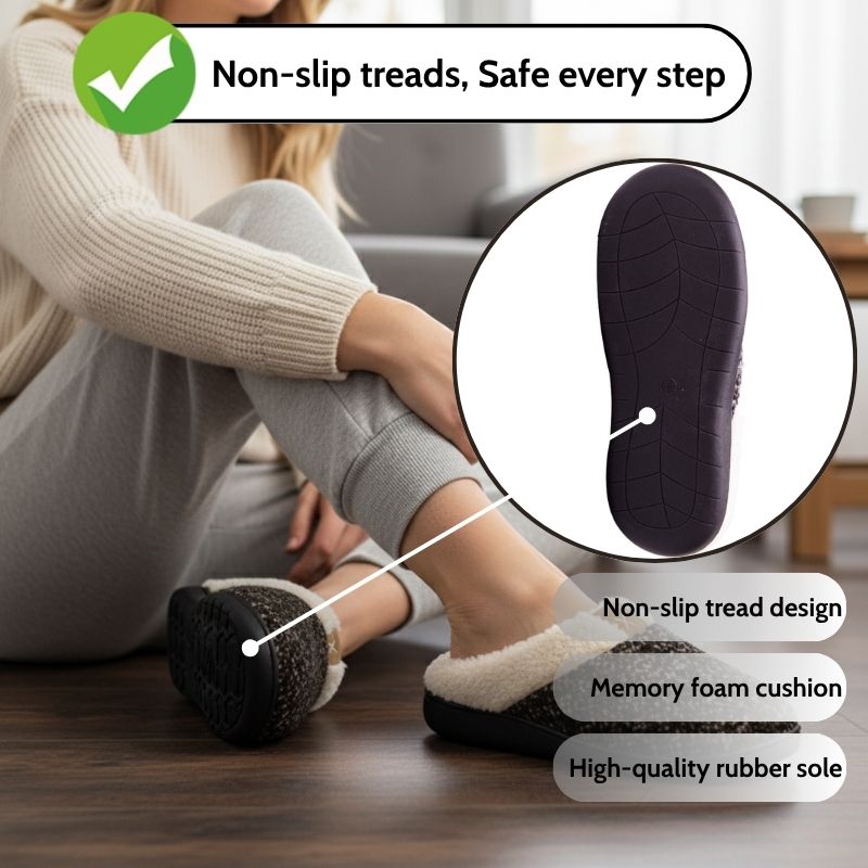 Warm Indoor Slippers for Women-Memory Foam & Non-Slip Sole