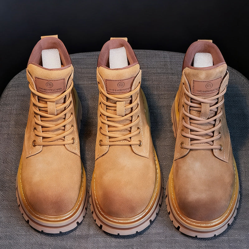 Crafted with high-quality cow suede (nubuck leather), these boots are resistant to light water and stains, keeping your feet protected in wet conditions. The durable rubber sole ensures traction and stability on different terrains, from city streets to outdoor paths.